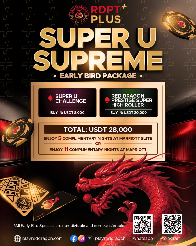 Later in the series, the Super U Challenge brings an USDT 8,000 buy-in to the schedule, followed by the Red Dragon Prestige Super High Roller with an USDT 20,000 entry point. Together, they form a clear elite tier, creating a coherent high-roller arc rather than scattered headline moments.